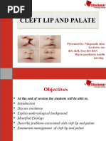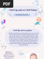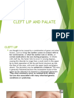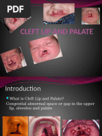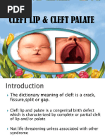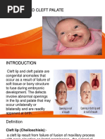 MANAGEMENT AIM: To prevent further complications and enhancing normal growth and development SURGICAL 1. Sutured together by either diagonal incision or a staggered suture line (z-plasty) used to minimize notching of tissue 2-3 months of age/ neonatal period May require more than one surgery 2. Cheilopasty: - use of metal or adhesive strips Reduces tension 3. Logan bar/ clamp 4. Working with a body of professionals which includes: - ENT specialist (otolaryngologist) - Pediatrition - Orthodonist - Nutritionist - Audiologist - Plastic Surgion - Genetisis - Pediatric Dentist - Speech therapist - Psychologist or Social Worker 5. Palatoplasy cleft palate procedure