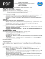 How well do you want them to demonstrate their mastery? Degree to which the new skill must be mastered or the criterion for acceptable performance (include time limit, range of accuracy, proportion of correct responses required, and/or qualitative standards.) Examples of Objective Statements: The Drama I class will be able to identify and draw stage directions using pencils and rulers with 100% accuracy. (Or) The kindergarten class will identify the colors, red, green, and blue using blocks 9 out of 10 tries. (Or) The Tenth grade English class will identify and discuss the effects of symbolism in the short story "Young Goodman Brown" using their text, Paper, and Pen in one hour. Use as many objective statements needed in order to meet the different objectives for the lesson. Use the following questions to assess objectives. Does the objective allow you to do the following with your lesson? 1. Identify what the expectations are for the learner 2. Identify the necessary requirements for the learning environment 3. Assess learning 4. Determine needs for appropriate media or materials How would you classify your objective? Is the learning outcome primarily: 1. Cognitive? 2. Affective? 3. Psychomotor / Motor Skill? 4. Interpersonal? 5. Intrapersonal?