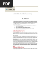 To become skilled in todays classrooms it is crucial to know when to use a wide range of instructional strategies and passive and interactive media. Heinich, R., Molenda, M., Russell, D. J., & Smaldino, E. S., (2002) stated to use media and technologies effectively a systematic plan for thier use is necessary. They suggest utilizing the ASSURE model as a guide, which identifies six major steps in an instructional planning process. The Assure Model is: A procedural guide for planning and delivering instruction that integrates technology and media into the teaching process. A systematic approach to writing lesson plans. A plan used to help teachers organize instructional procedures. A plan used to help teachers do an authentic assessment of student learning. A model that can be used by all presenters.