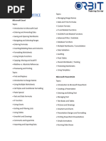 Introduction to Excels command macros : Recording your own macros, running macros, assigning macros to buttons. Using worksheets as databases : Database concepts and terms, Creating an excel database, Working with data forms, filteringa better way to find, sorting excel databases, cross-tabulating databases, adding subtotals to databases. Automating what-if projects : General organizational tips, scenario manager, finding the right number with solver. Auditing and trouble shooting worksheets : Using error values to locate problems, using iteration to solve circular references, using the info window to find errors, using the auditing command to trouble shoot. MS EXCEL : Features of MS Excel Spread sheet / worksheet, workbook, cell, cell pointer, cell address etc., - Parts of MS Excel window Saving, Opening and Closing workbook Insertion and deletion of worksheet Entering and Editing data in worksheet cell range Formatting Auto Fill Formulas and its advantages References : Relative, absolute and mixed Functions: Meaning and Advantages of functions, different types of functions available in Excel Templates Charts Graphs Macros : Meaning and Advantages of macros, creation, editing and deletion of macros Data Sorting, Filtering, validation, Consolidation, Grouping, Pivot Table and Pivot Chart Reports. MS Excel Excel Basics: Overview of Excel features, Getting started, Creating a new worksheet, Selecting cells, Entering and editing text, Entering and editing Numbers, entering and editing Formulas, Referencing cells, moving cells, copying cells, sorting cell data, inserting rows, inserting columns, Inserting cells, Deleting parts of a worksheet, clearing parts of a worksheet. Formatting : Page setup, changing column widths and Row heights, auto format, changing font sizes and Attributes, centering text across columns, using border buttons and Commands, changing colors and shading, hiding rows and columns. Introduction to functions: Parts of a functions, Functions Requiring Add-ins, The Function Wizard. Examples functions by category: Data and time functions, Engineering functions, Math and Trig functions, Statistical functions, Text functions. Excel Charts: Chart parts and terminology, Instant charts with the chard wizard, creation of different types of charts, printing charts, deleting charts Linking in Excel Excel Graphics: Creating and placing graphic objects, Resizing Graphics, Drawing Lines and Shapes.
