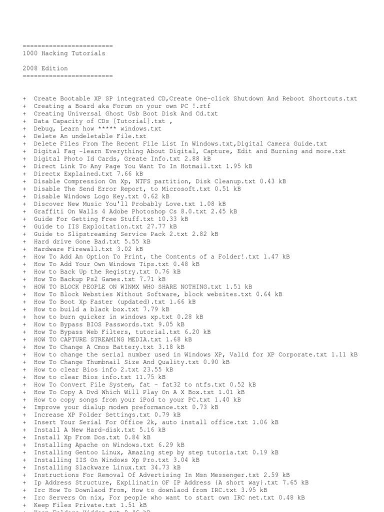 ======================== 1000 Hacking Tutorials 2008 Edition ========================