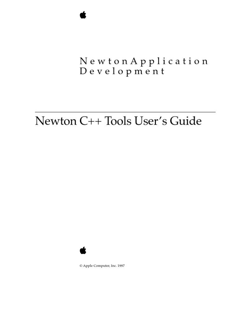 Newton C++ Tools with MPW. Contains all of the C++ tools, interfaces, libraries, and sample projects pre-assembled with a minimal version of MPW for a quick-start, drag-and-drop installation. Newton Toolkit 1.6.3 Updater. Contains the latest patch to update Newton Toolkit 1.6 for use with Newton C++ Tools. Documentation. Contains the Acrobat .pdf documentation les for the C++ Programmers Reference and for this manual. Debugging. Contains Newtsbug, a Macintosh-hosted, serial-link Newton debugger, the user manual for Newtsbug, and Newtsbug Connection, the debugging mode start-up package. ROM Images for C++ Tools. Contains the ROM image les used with Newtsbug for various Newton 2.0 devices. C++ Tools as Additions for MPW. A duplicate set of just the required MPW additions you can use if you already have a full installation of MPW on your system that you want to extend with the Newton C++ Tools.