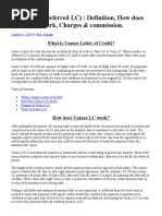 whichever is later. Usance is the credit period agreed between the buyer and the seller under the letter of credit. This may vary from 7 days usance (sight) to 90/180 days. The fee charged by bank for the usance period is referred to as usance charges (b)Retirement Charges 1. This would be payable at the time of retirement of LCs. LC opening bank scrutinizes the bills under the LCs according to UCPDC guidelines , and levies charges based on value of goods. 2. The advising bank charges an advising fee to the beneficiary unless stated otherwise The fees could vary depending on the country of the beneficiary. The advising bank charges may be eventually borne by the issuing bank or reimbursed from the applicant. 3. The applicant is bounded and liable to indemnify banks against all obligations and responsibilities imposed by foreign laws and usage. 4. The confirming bank's fee depends on the credit of the issuing bank and would be borne by the beneficiary or the issuing bank (applicant eventually) depending on the terms of contract. 5. The reimbursing bank charges are to the account of the issuing bank. Risk Associated with Opening Imports L/cs The basic risk associated with an issuing bank while opening an import L/c are : 1. The financial standing of the importer As the bank is responsible to pay the money on the behalf of the importer, thereby the bank should make sure that it has the proper funds to pay. 2. The goods Bankers need to do a detail analysis against the risks associated with perishability of the goods, possible obsolescence, import regulations packing and storage, etc. Price risk is the another crucial factor associated with all modes of international trade. 3. Exporter Risk There is always the risk of exporting inferior quality goods. Banks need to be protective by finding out as much possible about the exporter using status report and other confidential information. 4. Country Risk These types of risks are mainly associated with the political and economic scenario of a country. To solve this issue, most banks have specialized unit which control the level of exposure that that the bank will assumes for each country. 5. Foreign exchange risk Foreign exchange risk is another most sensitive risk associated with the banks. As the transaction is done in foreign currency, the traders depend a lot on exchange rate fluctuations.