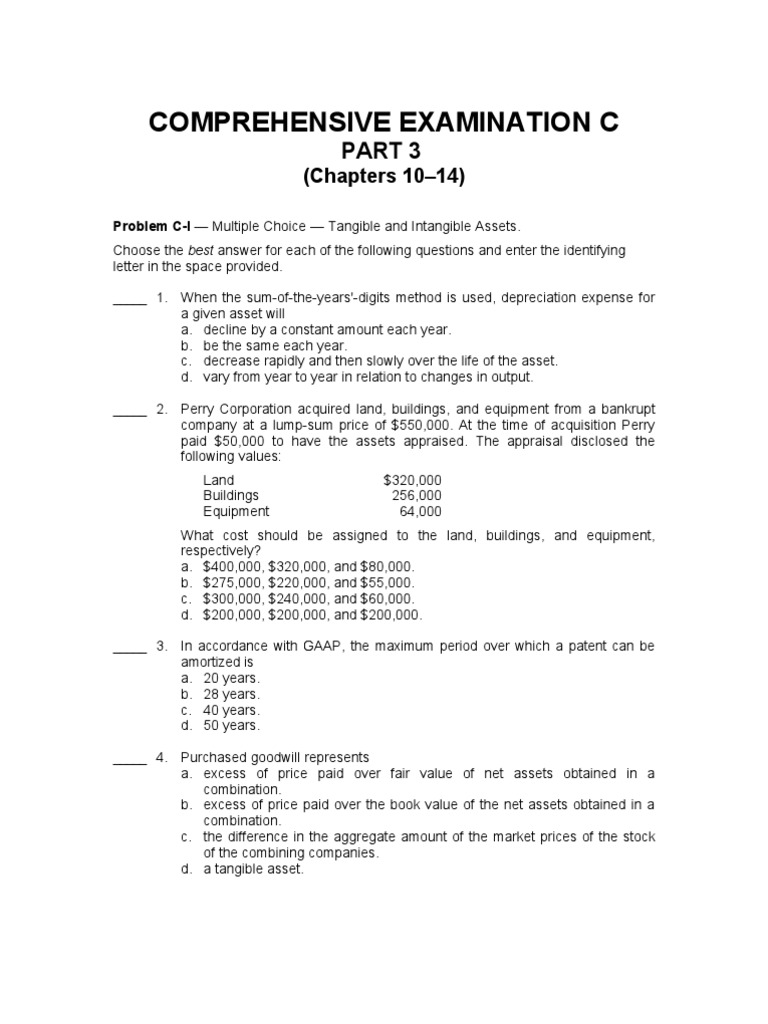 Problem C-I Multiple Choice Tangible and Intangible Assets.