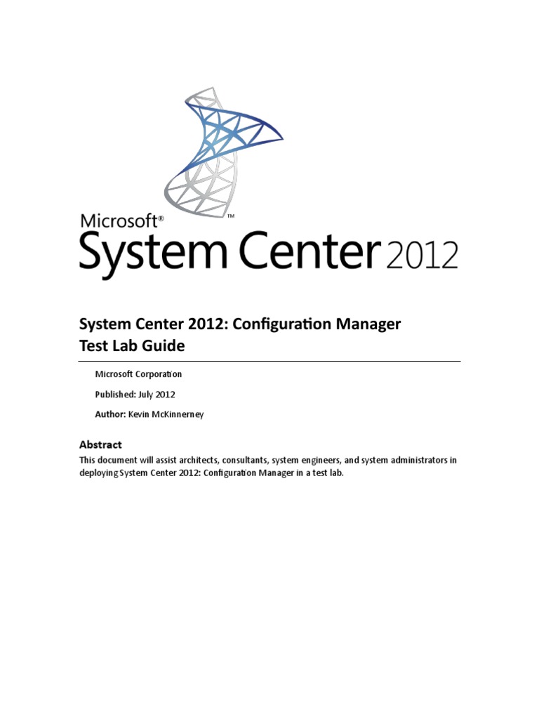 This document will assist architects, consultants, system engineers, and system administrators in deploying System Center 2012: Configuration Manager in a test lab.
