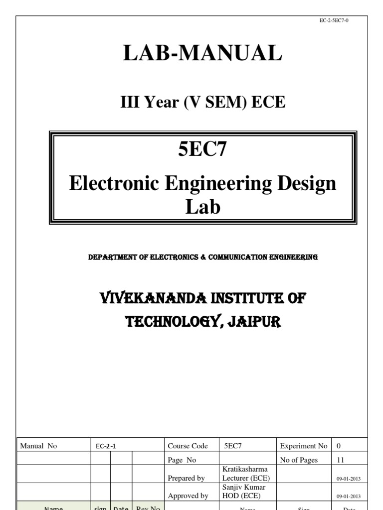 Branch: ECE Year/Semester:III /V Subject Name/code:-ELECTRONIC ENGINEERING DESIGN LAB (5EC7)