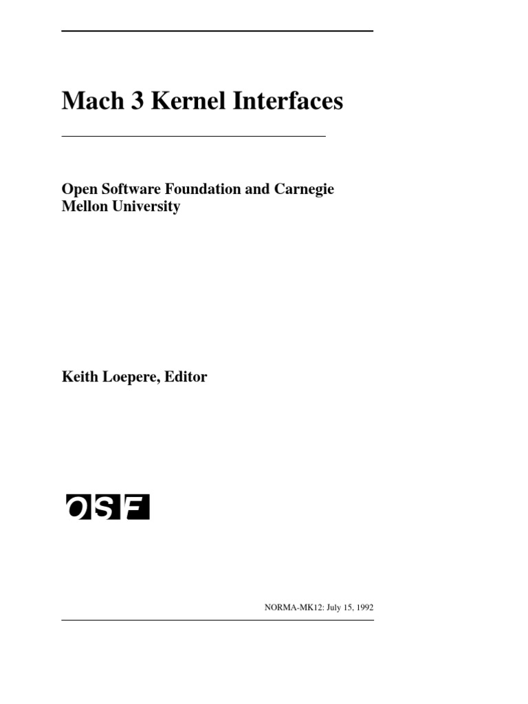 This book is in the Open Software Foundation Mach 3 series. Books in the OSF Mach 3 series: Mach 3 Kernel Principles Mach 3 Kernel Interfaces Mach 3 Server Writers Guide Mach 3 Server Writers Interfaces