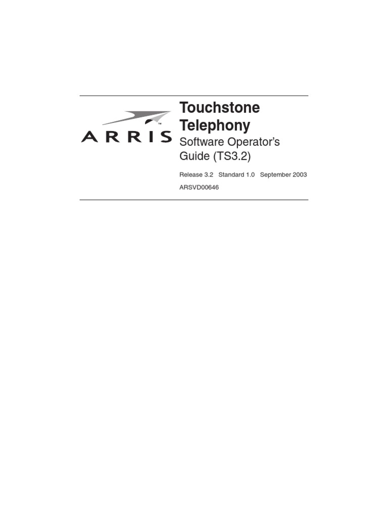 2002, 2003 ARRIS All rights reserved All information contained in this document is subject to change without notice. Arris Interactive reserves the right to make changes to equipment design or program components, as progress in engineering, manufacturing methods, or other circumstances may warrant. ARRIS, ARRIS Interactive, and Touchstone are trademarks of ARRIS Licensing Company. Cornerstone is a registered trademark of ARRIS Licensing Company. All other trademarks are the property of their respective holders. Document number: ARSVD00646 Release 3.2 Standard 1.0 September 2003