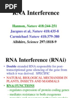 FURTHER READING Carmell, M. A., Zhang, L., Conklin, D. S., Hannon, G. J. & Rosenquist, T. A. Germline transmission of RNAi in mice. Nature Struct. Biol. 10, 9192 (2003). Hammond, S. M., Caudy, A. A. & Hannon, G. J. Post-transcriptional gene silencing by double-stranded RNA. Nature Rev. Genet. 2, 110119 (2001). Hemann, M. T. et al. An epi-allelic series of p53 hypomorphs created by stable RNAi produces distinct tumor phenotypes in vivo. Nature Genet. 33, 396400 (2003). McManus, M. T. & Sharp, P. A. Gene silencing in mammals by small interfering RNAs. Nature Rev. Genet. 3, 737747 (2002). Song, E. et al. RNA interference targeting Fas protects mice from fulminant hepatitis. Nature Med. 9, 347351 (2003). Zamore, P. D, Tuschl, T., Sharp, P. A., & Bartel, D. P. RNAi: double-stranded RNA directs the ATP-dependent cleavage of mRNA at 21 to 23 nucleotide intervals. Cell 101, 2533 (2000).