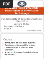 S. No. 1. Name of Topic Data and Information 1.1 Basic Concepts 1.2 Problems of Early Information Systems 1.3 Advantages of DBMS Database Architecture 2.1 Theory of Abstraction 2.2 Level of Architectures 2.3 Types of Users 2.4 Centralized and Distributed Databases Data Models 3.1 Hierarchical Model 3.2 Relational Model 3.3 Network Model Relational Algebra & Relational Calculus 4.1 Introduction 4.2 Basic Retrieval Capacity Concept of Network 5.1 Concept of Network 5.2 DBTG 5.3 DBA Schema Declaration Types of DBMS 6.1 Object Oriented DBMS 6.2 Object Relational DBMS Data and Query Processing 7.1 Basic Retrieval Capacity 7.2 Query Language 7.3 Query Processing 7.4 Client/Server Design Page No. 8-16