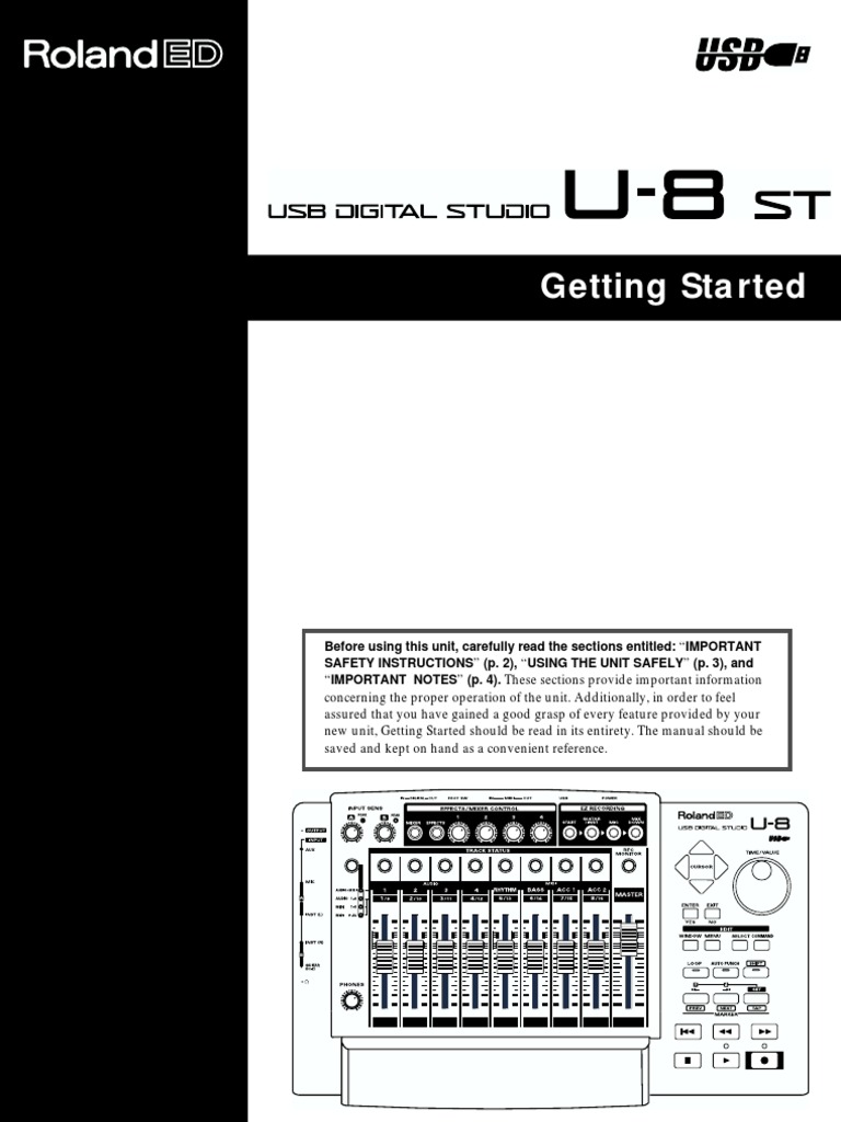 We want to thank you for your purchase of the U-8. The U-8 is a digital studio that you can connect to your computer to compose songs using a sequencer program.