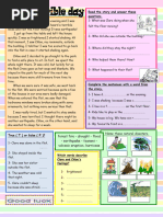 Chloe and I decided to go straight to the park 4- Who helped them there? How? to find a safe place to sit. In fact, we spent the whole night there. It was cold, but luckily for us the Red Cross gave us hot soup and blankets. We 5- What happened to their flat? word from Complete the sentences with a stayed in the park for much of the next day the story. because there were still tremors from time to 1- I have din the evening. time. When we were sure it was safe, we went back 2- I was shaking because I was c. to the flat. We were worried because quite a few 3- I live in a f on the first floor. of the houses in our area were badly damaged. 4- Kids like to play in the When we entered the flat, we saw that the bedrooms windows were broken along with some 5- My house Name these natural disasters. is big. We have six r True ( T ) or nothing more ornaments, butfalse ( F )? serious forest fire drought flood than that. 6- My favourite food is s earthquake tsunami I was really tired, but I wanted to stay awake 1- Clare was alone in the flat. volcanic eruption- hurricane because I was terrified. I thought there might be Which words describe another earthquake. Chloe, on the other hand, said 2- She stayed inside the Clare and Chloe's she wanted to sleep for a week. flat. feelings? 3- She saw her sister 1- frightened outside the flat. 4- The weather was cold that night. 5- Clare couldnt sleep because she was afraid.