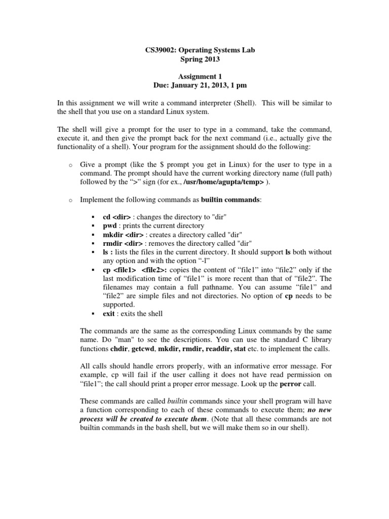 CS39002: Operating Systems Lab Spring 2013 Assignment 1 Due: January 21, 2013, 1 pm In this assignment we will write