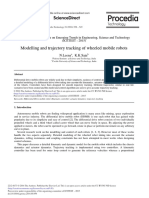 the maximum velocity can be reached then the acceleration distance and time are computed and the remaining distance of the section is driven at the maximum velocity. If the maximum velocity is not reachable, the robot will then either accelerate throughout the whole section if it is followed by another one or just accelerate and decelerate if it is one section. The exit velocity of a section must automatically be the start velocity of the next section. The second operation deals with calculating the distances and times for acceleration and deceleration from the start, section or the maximum velocity to the exit velocity of each section. If the section length is insufficient to decelerate to the exit velocity then the start velocity must be changed to another new velocity that the section can be completed with the desired exit velocity. It is required that the maximum velocity of the first section must be as low as possible for the robot to be able to decelerate normally to the start velocity of the next section if it is lower. A high maximum start velocity could only occur if the trajectory generation algorithm is used on-line. 3.2. Explanation of the algorithm In the first step, each section is set to have a start velocity equal the previous section exit velocity for the sake of continuity and may be to avoid slippage if the robot is known to operate in some slippery sections or if it is executing a tight turn. If the start velocity is too high to decelerate to the exit velocity then it must be set to a lower velocity. The second step is to check if the length of the section large enough to allow the robot to reach for the maximum velocity if so then the time and distance, necessary for acceleration from the start velocity to the maximum velocity of the current section, are calculated as well as the time to drive the remaining distance with the constant maximum velocity. Otherwise the resultant velocity of constant acceleration is the end velocity of the section. First and second steps together ensure that there is no demand for velocity increase greater than the robot actuators can deliver with fixed acceleration. In the third step, the end velocity of the current section is set to equal to the start velocity of the next section. This is to maintain the smoothness and continuity of the motion and also that the deceleration in each section starts in time to complete the section and reach the start velocity of the next section. Forth step is dealing with calculating the time and distance needed for the robot to decelerate from the highest velocity reached during the execution of the section to its end velocity. The highest velocity is the maximum velocity if the section is long enough. Otherwise it is the peak velocity if the section contains only acceleration and deceleration parts. 4. Motion Control The task of the controller is to achieve various goals and desired features for the robot motion. It is also designed to execute the planned sequences of motions correctly in the presence of any error. The control strategies in this work are based on controlling the traction forces causing