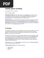 Wireless location tracking is a technology that enables a device, such as a cell phone, to be traced to its current location, as long as the phone is turned on. In order for cell users to have service that allows them to make phone calls, their phones must be able to connect to a cellular network of cell site base stations, such as Verizon Wireless, Cingular, Sprint, or any other service provider. These devices constantly search for the strongest signal emitted from base stations closest to that user and will connect to the nearest and strongest transmitting site. As the user moves around to various locations, the mobile device switches to various cell sites during calls or while waiting (idle), in order to ensure the phone has the strongest signal (Cell Phone Tracking). As this is being done, information is being stored on which mobile device is using certain cell sites. This allows cellular companies to see exactly where each cell phone user has been. Cell phones can be tracked in two ways: (1) through triangulation and (2) through a Global Positioning System (GPS) chip that is embedded in users cell phones. For phones that are not GPS equipped, cell phone service providers can use triangulation, the pinpointing of a location through comparing of signal strength from at least three cell sites, in order to determine a general location of the mobile device. Other cell phones that are equipped with GPS chips can be located through satellite connections, thus allowing for a much more accurate location determination, usually within 10-50 meters (Budden). At the end of 2005, the U.S. Federal Communications Commission (FCC) established a mandate requiring all cell phones to contain either GPS or some other ability to track the location of a cell phone call, so that the cell phone carriers can trace calls to a location within 100 meters or less (Frenzel). The idea behind these mandates is to ensure that the police can trace an emergency cell phone call. What started merely as a safety precaution has turned into a new cell phone craze, making wireless location tracking a part of everyday use.