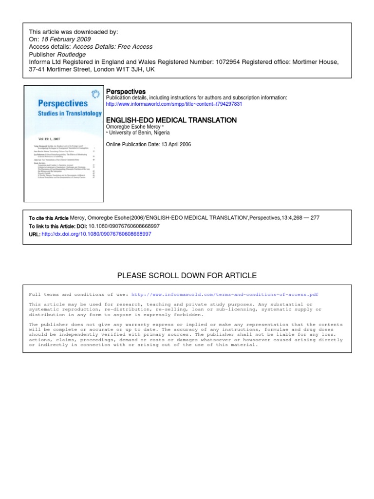 0907-676X/05/04/268-10 $20.00 © 2005 Ọmọrẹgbẹ Ẹsọhẹ Mercy
