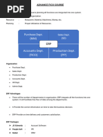 INTRODUCTION SAP stands for System Application and Products in data Processing FI stands for Financials CO stands for Controlling Version : ECC6 ECC stands for ERP Central Component SAP was released in 1972 It head quarters in Germany What is ERP? ERP stands for Enterprise Resource planning, it is integrated all functions in one system. Organization | -----------------------------------------------------------------------------------------| | | | Purchase Dept. Store Dept. Production Dept. Accounts Dept. Will have no of departments in organization. ERP integrate all the functions into one system. It will facilitate free flow of data among the departments. Advantages: Once stores person updates in the system It can be shared by account person. No mismatch in reporting Data Source is only one once updation. Store Department at Factory: Where the material is received are updates his records send the bill to account person. Accounts department at City office : Pass an entry in the books Disadvantages: Duplicate job Time gap. ERP Packages: SAP, Oracle, Financials, Peoples soft, BAAN , J.D.Edwards 1972- SAP R/1 Real time data processing 1980-SAP R/2 Included no.of countires and no.of currencies