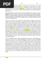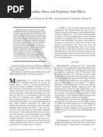 The effects of amphetamines and methamphetamine are similar to cocaine, but their onset is slower and their duration is longer. In contrast to cocaine, which is quickly removed from the brain and is almost completely metabolized, methamphetamine remains in the central nervous system longer, and a larger percentage of the drug remains unchanged in the body, producing prolonged stimulant effects. Chronic abuse produces a psychosis that resembles schizophrenia and is characterized by: Paranoia, picking at the skin, preoccupation with ones own thoughts, and auditory and visual hallucinations. Violent and erratic behavior is frequently seen among chronic abusers of amphetamines and methamphetamine.