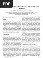 (c) (d) Fig.4: complementary image fusion. (a)CT image; (b)MRI image; (c) fused image of DWT; (d) fused image of DCT VI. CONCLUSION The paper has presented a new trend in the fusion of digital image, MRI and CT images which is based on the curvelet transform. A comparison study has been made between the traditional wavelet fusion algorithm and the proposed curvelet fusion algorithm. The experimental study shows that the application of the curvelet transform in the fusion of MR and CT images is superior to the application of the traditional wavelet transform. The obtained curvelet fusion results have higher correlation coefficient and entropy values than in wavelet fusion results and minimum values of RMS error than in the wavelet transform. At last, these fusion methods are used in simulation experiments of multi-focus and complementary fusion images. In vision, the fusion algorithm proposed in this paper acquires better fusion result. In objective evaluation criteria, curvelets fusion characteristic are superior to traditional DWT. REFERENCES 1.Chao R., Zhang K., Li Y. J., An image fusion algorithm using wavelet transform, Chinese Journal of Electronics , vol. 32, no. 5, pp. 750-753, 2004. 2.Shen, Y., J. C. Ma, and L. Y. Ma, An adaptive pixel weighted image fusion algorithm based on local priority for CT and MRI images, Proceedings of the IEEE Instrumentation and Measurement Technology Conference, (IMTC), 420422, 2006.