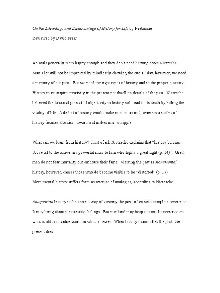 On the Advantage and Disadvantage of History for Life by Nietzsche