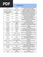 abdomen abdominal distention absorb acid taste acidosis acuity acute acute cholecystitis adenopathy adjuvant agent albumin allergic reaction alopecia ambulate/ambulation/ ambulatory analgesic anaphylaxis anasarca anemia anesthetic angina anorexia antecubital antibody anticonvulsant antiemetic antilipemic antimicrobial antiretroviral antitussive aplastic anemia arrhythmia arterial thrombosis arterial catheter arthralgia ascites aspiration assay asthenia asthma belly, stomach bloating take up fluids, take in sour taste condition when blood contains more acid than normal clearness, keenness, esp. of vision and airways new, recent, sudden, urgent gall stones, which may cause upper abdominal pain and require hospitalization and surgery swollen lymph nodes (glands) helpful, assisting, aiding, supportive drug, medication protein found in blood rash, hives, swelling, trouble breathing loss of hair walk, able to walk pain-relieving drug serious, potentially life-threatening allergic reaction build up of fluid throughout the whole body, which occurs in severely ill people low number of red blood cells, can causes tiredness and shortness of breath. May require a blood transfusion a drug or agent used to decrease the feeling of pain, or eliminate the feeling of pain by putting you to sleep chest pain due to decreased oxygen getting to the heart. disorder in which person will not eat; lack of appetite related to the inner side of the forearm protein made in the body in response to foreign substance drug used to prevent seizures medication to prevent nausea/vomiting a drug that lowers fat levels in the blood drug that kills bacteria and other germs drug that works against the growth of certain viruses a drug used to relieve coughing a disorder caused by decreased production of red blood cells irregular heart beat blood clot in an artery that blocks the artery. This could be serious and life threatening small tube placed in an artery joint pain build up of fluid in the abdomen, which causes bloating and discomfort. This could require that the fluid be removed by a procedure called paracentesis fluid entering the lungs, such as after vomiting lab test feeling weak and having no energy lung disease associated with tightening of air passages, making breathing difficult