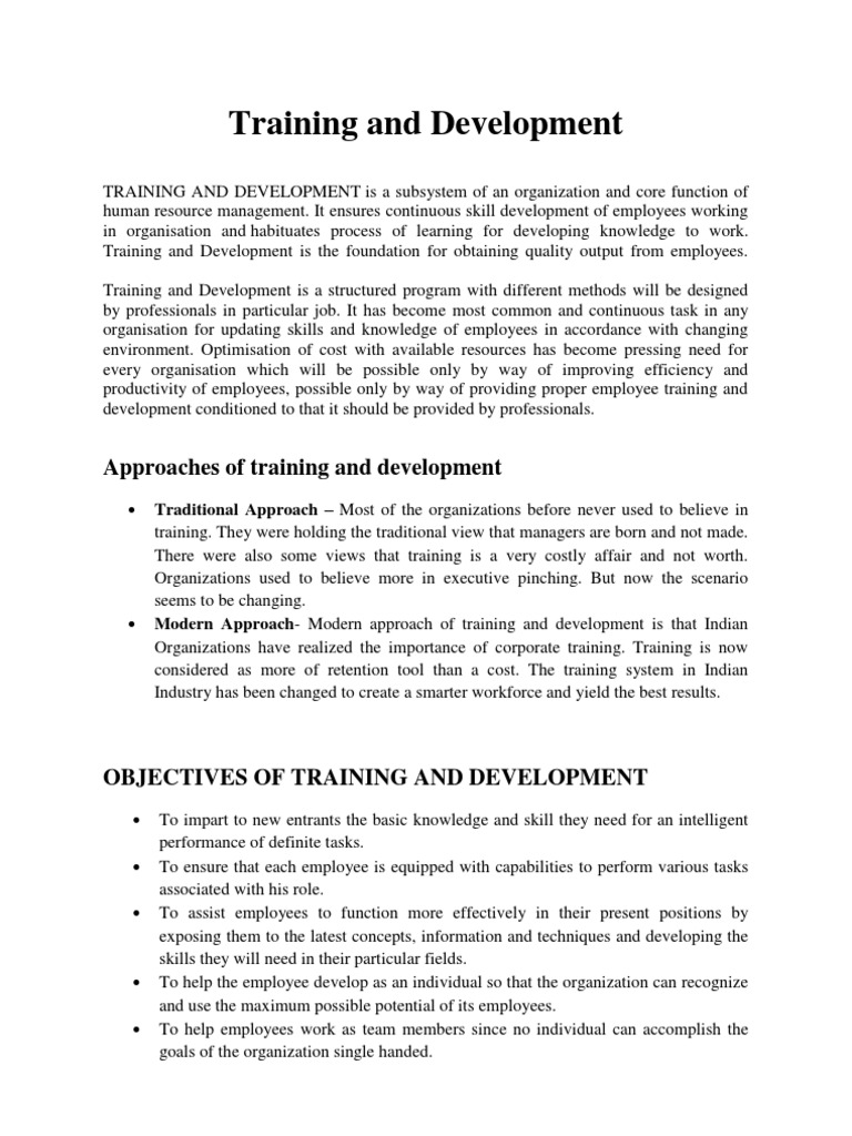 Traditional Approach Most of the organizations before never used to believe in training. They were holding the traditional view that managers are born and not made. There were also some views that training is a very costly affair and not worth. Organizations used to believe more in executive pinching. But now the scenario seems to be changing. Modern Approach- Modern approach of training and development is that Indian Organizations have realized the importance of corporate training. Training is now considered as more of retention tool than a cost. The training system in Indian Industry has been changed to create a smarter workforce and yield the best results.