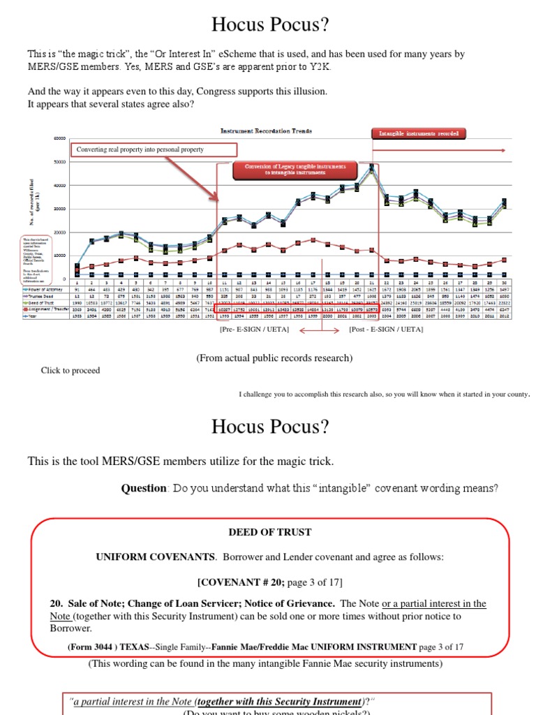 The security instrument trick , covenant 20, (explained on slide 2), which is utilized by MERS/GSE members, twists the age old paper way of doing things with Real Property mortgages.