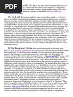 ****************************************************************************** ****************************************************************************** ********Lacan Module pt 2: The Structure of the Psyche THE PSYCHE CAN BE DIVIDED into three major structures that control our lives and our desires. Most of Lacan's many terms for the full complexity of the psyche's workings can be related to these three major concepts, which correlate roughly to the three main moments in the individual's development, as outlined in the Lacan module on psychosexual development: