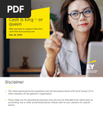 Q: What is working capital? A: Working capital is defined as current assets minus current liabilities; it tells the financial statement user how much cash is tied up in the business through items such as receivables and inventories and also how much cash is going to be needed to pay off short term obligations in the next 12 months. Q: Is it possible for a company to show positive cash flows but be in grave trouble? A: Absolutely. Two examples involve unsustainable improvements in working capital (a company is selling off inventory and delaying payables), and another example involves lack of revenues going forward.in the pipeline Q: How is it possible for a company to show positive net income but go bankrupt? A: Two examples include deterioration of working capital (i.e. increasing accounts receivable, lowering accounts payable), and financial shenanigans. Q: I buy a piece of equipment, walk me through the impact on the 3 financial statements A: Initially, there is no impact (income statement); cash goes down, while PP&E goes up (balance sheet), and the purchase of PP&E is a cash outflow (cash flow statement) Over the life of the asset: depreciation reduces net income (income statement); PP&E goes down by depreciation, while retained earnings go down (balance sheet); and depreciation is added back (because it is a non-cash expense that reduced net income) in the cash from operations section (cash flow statement). Q: Why are increases in accounts receivable a cash reduction on the cash flow statement? A: Since our cash flow statement starts with net income, an increase in accounts receivable is an adjustment to net income to reflect the fact that the company never actually received those funds. Q: How is the income statement linked to the balance sheet?