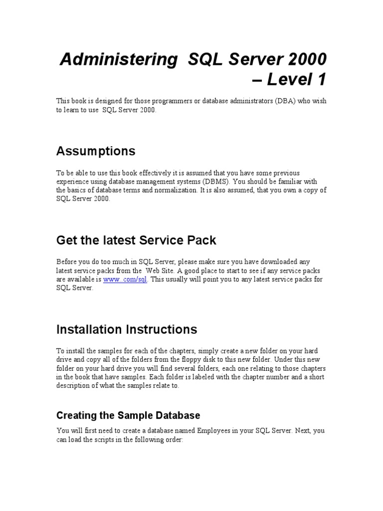 Before you do too much in SQL Server, please make sure you have downloaded any latest service packs from the Web Site. A good place to start to see if any service packs are available is www..com/sql. This usually will point you to any latest service packs for SQL Server.