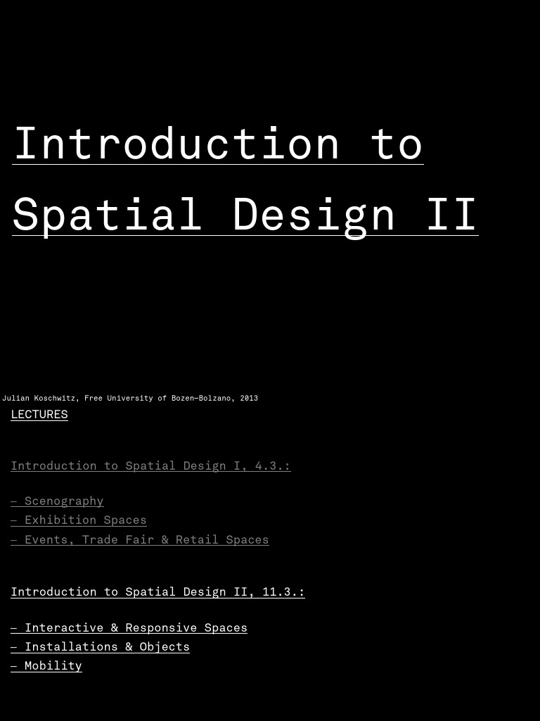 Introduction to Spatial Design II, 11.3.: Interactive & Responsive Spaces Installations & Objects Mobility