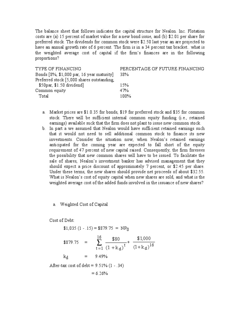 The balance sheet that follows indicates the capital structure for Nealon. Inc.
