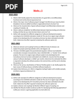SD 1. 2. 3. 4. 5. 6. What is coupling? What is cohesion? What is the difference between coupling and cohesion? What are the different types of coupling that may exist between two modules? What are the different types of cohesion that exist within a module? Why do we try to minimize coupling and maximize cohesion? Function-oriented Software design: 1. Differentiate between a structured chart and a flow chart. State two major design activities. UML 1. What is UML? What is CASE? 2. What are the different types of diagrams and views supported by UML? 3. Represent the following relations among classes using UML diagram. a. Students credit 5 courses each sem. Each course is taught by one or more teachers. b. Bill contains number of items. Each item describes some commodity, the price of unit and total on this price. Coding and testing 1. 2. 3. 4. 5. 6. Compare and contrast white-box testing and black-box testing. What is stress testing? Why is stress testing applicable to only certain types of system? What is mutation testing? What is integration testing? What is the difference between an error and a failure? Testing detects which of these? Draw CFG for the following problem and calculate the McCabes cyclomatic complexity Compute_gcd(int a, int b) { while(a!=b) { if(a>b) then a=a-b; else b=y-x; } return a; }