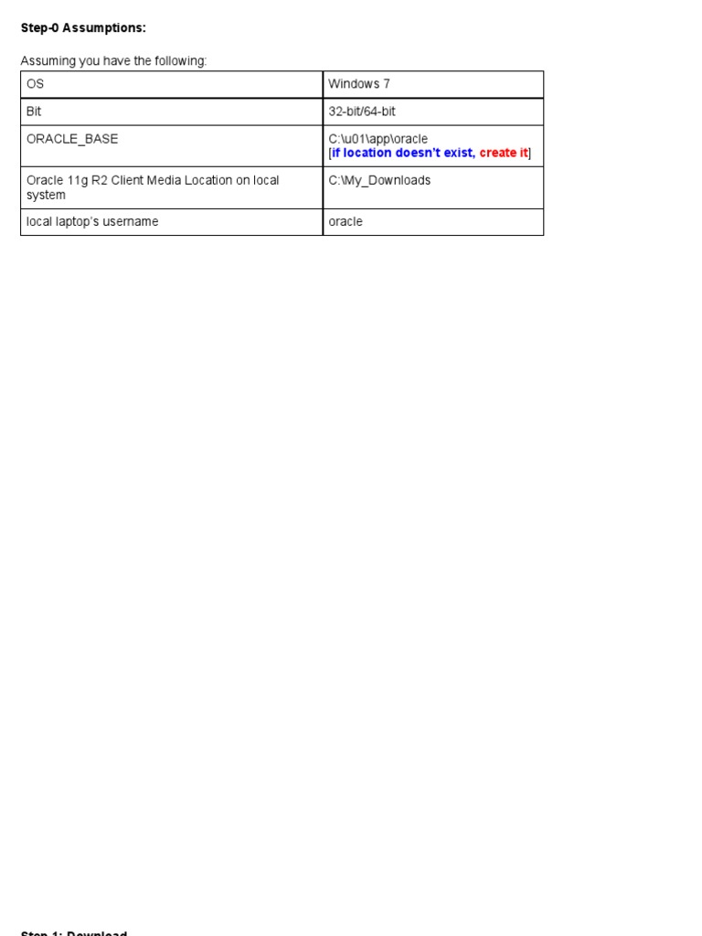 Step-0 Assumptions: Assuming you have the following: OS Bit ORACLE_BASE Oracle 11g R2 Client Media Location on local
