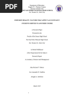 financially during the review have a weighted mean of 4.5 and interpreted as To a Great Extent. Respondents working while reviewing have a weighted mean of 1.83 and it is interpreted as Little. Based on the above information, financial supports have a great effect while a financial problem doesnt have a great effect on the respondents performance. 2.3 Social and Physical Factors TABLE 7. EXTENT OF THE FACTORS AFFECTING THE PERFORMANCE OF PSCC-BSA GRADUATES IN THE CPA LICENSURE EXAMINATION AS TO SOCIAL AND PHYSICAL FACTORS Weighted Factors a. b. Encountered friend problems during examination Encountered problems with your girlfriend or 1.67 boyfriend during examination c. d. Encountered family problems during review Encountered friend problems after examination 1.53 1.67 NEVER NEVER TO A GREAT 4.47 e. f. g. Physically fit during the examination Suffered from illness before the examination Suffered from illness during the examination 1.90 1.73 2.09 EXTENT LITTLE NEVER 6 5 7 1 3 NEVER 3 Mean 1.67 Descriptive Interpretation NEVER Rank 3