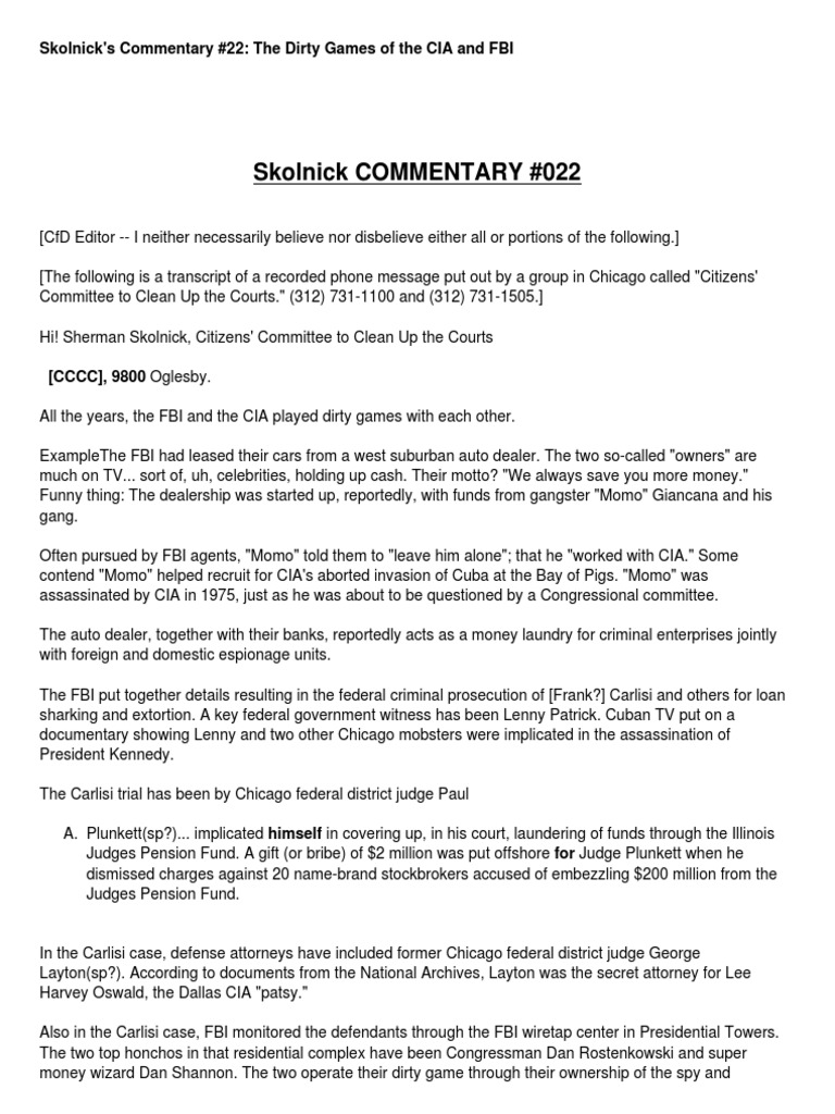 Skolnick's Commentary #22: The Dirty Games of the CIA and FBI