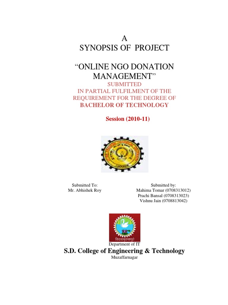 A SYNOPSIS OF PROJECT ONLINE NGO DONATION MANAGEMENT