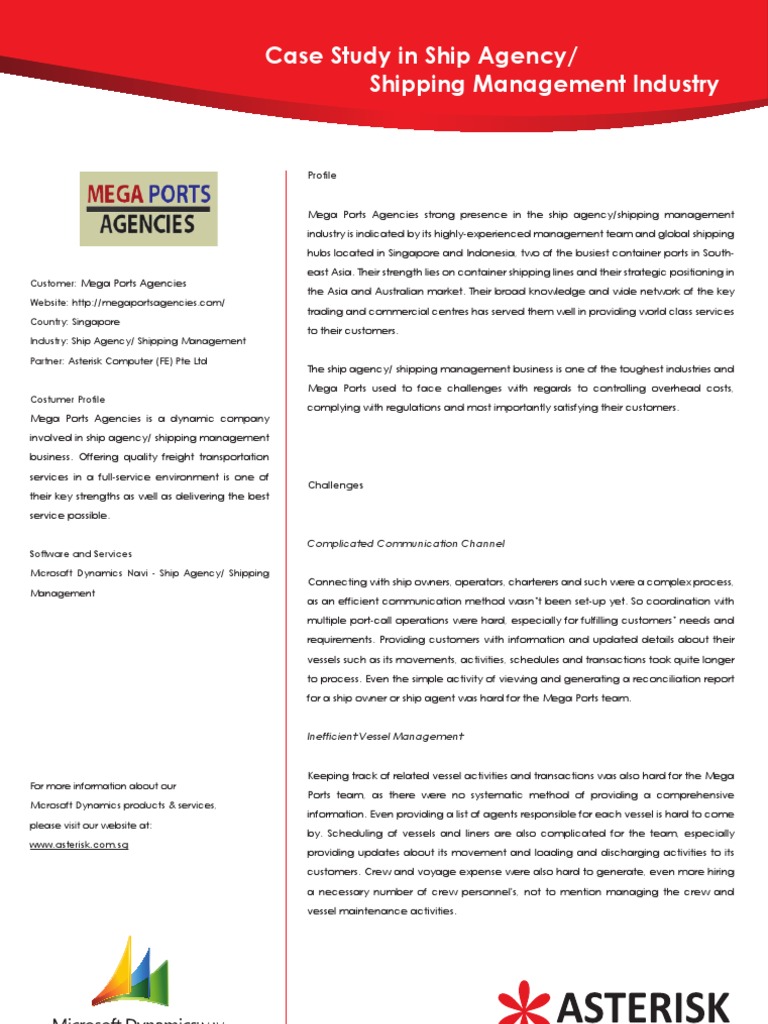 Case Study in Ship Agency/ Shipping Management Industry