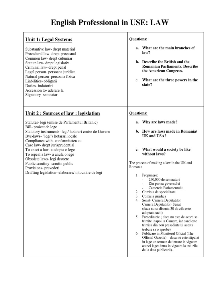 Questions: a. Why are laws made? b. How are laws made in Romania/ UK and USA?