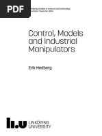 issue in manufacturing innovation for a few decades, and numerical control has played a central role in increasing system flexibility. Contemporary industrial robots are programmable machines that can perform different operations by simply modifying stored data, a feature that has evolved from the application of numerical control. Another origin of today's industrial robots can be found in remote manipulators. A remote manipulator is a device that performs a task at a distance. It can be used in environments that human workers cannot easily or safely access, e.g. for handling radio-active materials, or in some deep sea and space applications. The first master-slave manipulator system was developed by 1948. The concept involves an electrically powered mechanical arm installed at the operation site, and a control joystick of geometry similar to that of the mechanical arm (Figure 1-2). The joystick has position transducers at individual joints that measure the motion of the human operator as he moves the tip of the joystick. Thus the operator's motion is transformed into electrical signals, which are transmitted to the mechanical arm and cause the same motion as the one that the human operator performed. The joystick that the operator handles is called the master manipulator, while the mechanical arm is called the slave manipulator, since its motion is ideally the replica of the operator's commanded motion. A master-slave manipulator has typically six degrees of freedom to allow the gripper to locate an object at an arbitrary position and orientation. Most joints are revolute, and the whole mechanical construction is similar to that of the human arm. This analogy with the human arm results from the need of replicating human motions. Further, this structure allows dexterous motions in a wide range of workspaces, which is desirable for operations in modern manufacturing systems.