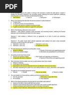 Which of the following statements regarding the relevance of evidence is correct? a. To be relevant, evidence must pertain to the audit objective of the evidence. b. To be relevant, evidence must be persuasive. c. To be relevant, evidence must relate to multiple audit objectives. d. To be relevant, evidence must be derived from a system including effective internal controls. Two determinants of the persuasiveness of evidence are: a. competence and sufficiency. b. relevance and reliability. c. appropriateness and sufficiency. d. independence and effectiveness. Three common types of confirmations used by auditors are (1) negative confirmations, (2) blank form positive confirmations, and (3) positive confirmations with information included. Place the confirmations in order of reliability from highest to lowest. a. 1, 2, 3. b. 3, 2, 1. c. 2, 3, 1. d. 3, 1, 2. When auditors use documents to support recorded transactions, the process is often called: a. inquiry. b. confirmation. c. vouching. d. physical examination. An example of an external document is: a. employees time reports. b. bank statements. c. purchase order for company purchases. d. carbon copies of checks. An example of a document the auditor receives from the client, but which was prepared by someone outside the clients organization, is a(n): a. confirmation. b. sales invoice. c. vendor invoice. d. bank reconciliation. Evaluations of financial information made by a study of plausible relationships among financial and nonfinancial data involving comparisons of recorded amounts to expectations developed by the auditor is a definition of: a. analytical procedures. b. tests of transactions. c. tests of balances. d. auditing. Often, auditor procedures result in significant differences being discovered by the auditor. The auditor should investigate further if: Significant differences are not Significant differences are expected but