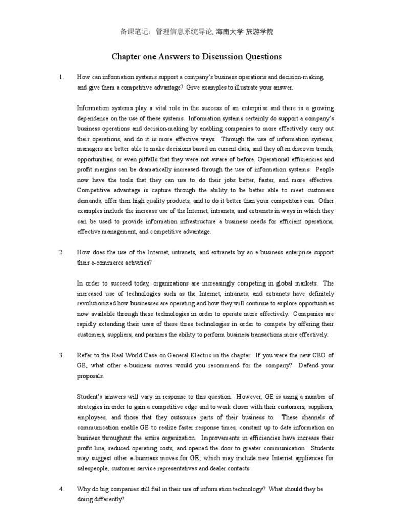 Chapter one Answers to Discussion Questions