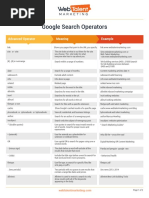 Location of term By default, Google searches for your term throughout a web page. But if you just want it to search certain locations, you can use operators such as "inurl:", "intitle:", "intext:", and "inanchor:". Those search for a term only within the URL, the title, the body text, and the anchor text (the text used to describe a link). Cached pages Looking for a version of a page the Google stores on its own servers? This can help with outdated or update pages. Use the "cached:" operator. !!!!!!! Certain Terms: