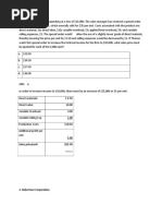 1. The answer is zero. The proper analysis is to compare the cost of purchasing machine X versus the cost of purchasing from the outside vendor. The analysis was as follows, showing that Calista should purchase machine X if volume is expected to exceed 100,000 units.: Machine X $2Q = $.65Q + $135,000 Q = 100,000 The answer is different for 11-34 since the cost of machine X is now a sunk cost, and thus, the unit cost of $ 0.65 is always preferred to the outside price of $2, irrespective of the volume, even for very low volume levels. 2. The threshold to moving up to machine Y is high because the purchase cost of machine X is sunk and irrelevant. Cost of using X $.65S $.35S S = = = Cost of using Y $.30S + $204,000 $204,000 = 582,857 units