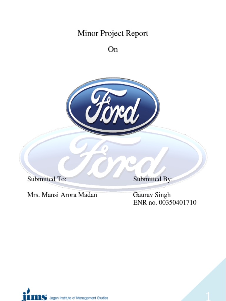 I n t o d a y s r a p i d l y c h a n g i n g w o r l d , t h e r e a r e a l o t o f t h i n g s f o r l e a r n i n g in the field of business. It means we are new at every moment. After a brief study of Ford Ltd. In finance and sales department, I reach on some conclusion. These all are presented in the following of the company in sales field: