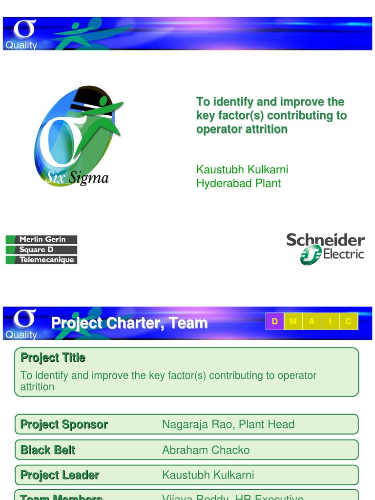 Define well This is extremely critical as this is what provided the anchor as you navigate through the project complexities. Think ahead of how you expect to proceed, what tools you potentially intend to use. This helps avoid reaching the IC stage and finding out the only meaningful tool you could have used is a Pareto Expect the Unexpected Hyderabad Plant being a new plant, the team was not aware of the key issues that would surface. Distance was not imagined as a constraint as we were providing transport facility. It was only when we went into shifts and started analyzing the situation were we able to control for this critical aspect Involve All When a situation arises, dont adopt a stance of management knows best. Make cross functional teams that cut-across hierarchies Be data and fact driven Avoid preconceived biases from coloring your analysis phase. Be open to all ideas and creative brain-storming suggestions Be patient there is a tendency to rush through some stages of the DMAIC cycle. Each stage is equally important, and more so the improve and control stages as this is where the rubber meets the road the final validation of your assumptions and solutions!.