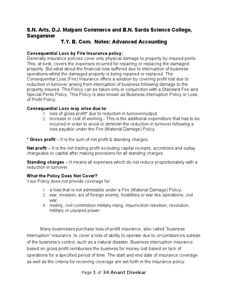 S.N. Arts, D.J. Malpani Commerce and B.N. Sarda Science College, Sangamner T.Y. B. Com. Notes: Advanced Accounting