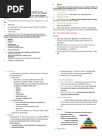 3. Moral slander verbal libel written, published pictures Tolality let pt feel like a whole being even if a part is removed. - offer wigs, bandana CA pt prosthesis, casts, w/c amputation Double effect if made to choose between 2 evils, choose the one that will have les bad effect. More good effect Justice of care priority coz @ pt has unique needs. Basic char or nursing process A acceptance universable B based on pts needs C client focus D dynamic update nursing process depending on clients needs E equitable care F familiarity G goal oriented toward solving problem Inviolability of life respect of life (promote H & prevent disease) - no abortion! Conflict clash of ideas resulting to crisis Methods to solve conflict. A avoidance putting in one corner dedma not good method S smoothing appealing to conscience/ kindness U unilateral force fear, threats correction N negotiation best method both parties will mutually decide & participate to solve problem. Nsg management Mgt MAN+ TASK = GOAL (pts) Theories: 1. Human relations theory must focus on proper relationship If needs provided to member (rest day, leave) Achievement of organization 2. Frederick Taylors scientific mgt theory 4 ts Tao get rt person/ tao Training Tool Tx 3. Douglas McGregor mgt theory Theory Y Positive worker - efficient diligent trustworthy reliable love their job = minimal supervision only