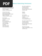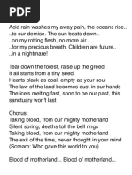 War Do you remember standing on a broken field White crippled wings beating the sky The harbingers of war with their nature revealed And our chances flowing by If I can let the memory heal I will remember you with me on that field When I thought that I fought this war alone You were there by my side on the frontline When I thought that I fought without a cause You gave me a reason to try Turn the page I need to see something new For now my innocence is torn We cannot linger on this stunted view Like rabid dogs of war I will let me memory heal I'll remember you with me on that field When I thought that I fought this war alone You were there by my side on the frontline And we fought to believe the impossible