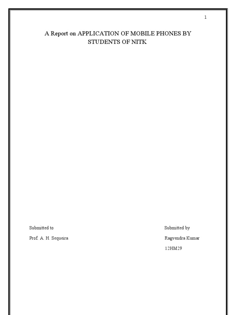 A Report on APPLICATION OF MOBILE PHONES BY STUDENTS OF NITK